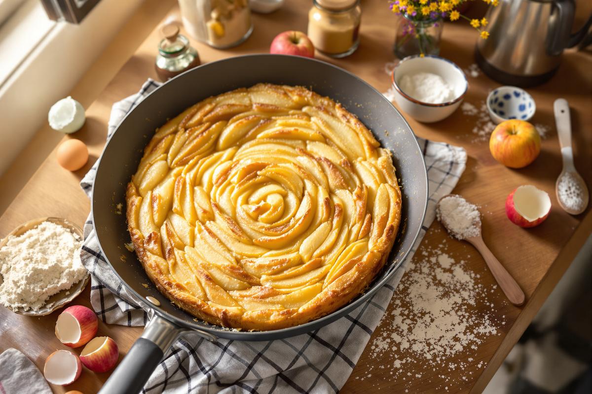 Oubliez les longues cuissons et les moules compliqués. Ce gâteau aux pommes sans four se prépare en moins de 20 minutes et ne demande qu’un équipement de base : une poêle antiadhésive et un couvercle. Le résultat ? Un gâteau à la texture moelleuse, un parfum envoûtant et une légère couche caramélisée qui fait toute la différence.